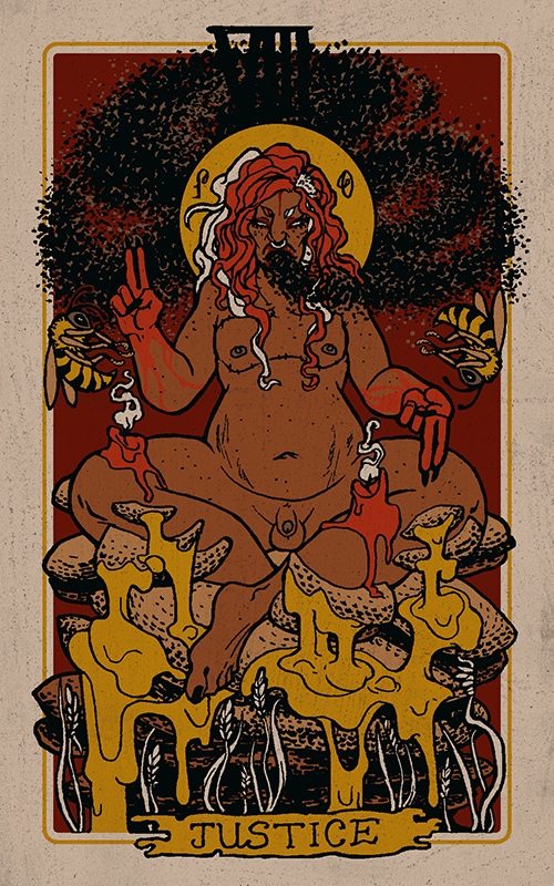 A tarot deck had been on Lucian’s to-do list (and high on his “when will you do an [x]” request list) for over a decade, but it hadn’t yet been “the right time”. The “right time” came as a surprise at the end of 2019. Lucian was made redundant (which was tiresome), and his newfound freedom saw the production of the artwork for the Threshold Tarot recommencing in earnest. He explored again the world and people inside his spirit, and rooted himself in amongst them, laying out his own pain, understanding and healing in the cycle of the tarot. It is possibly his most personal, honest and fun work to date.